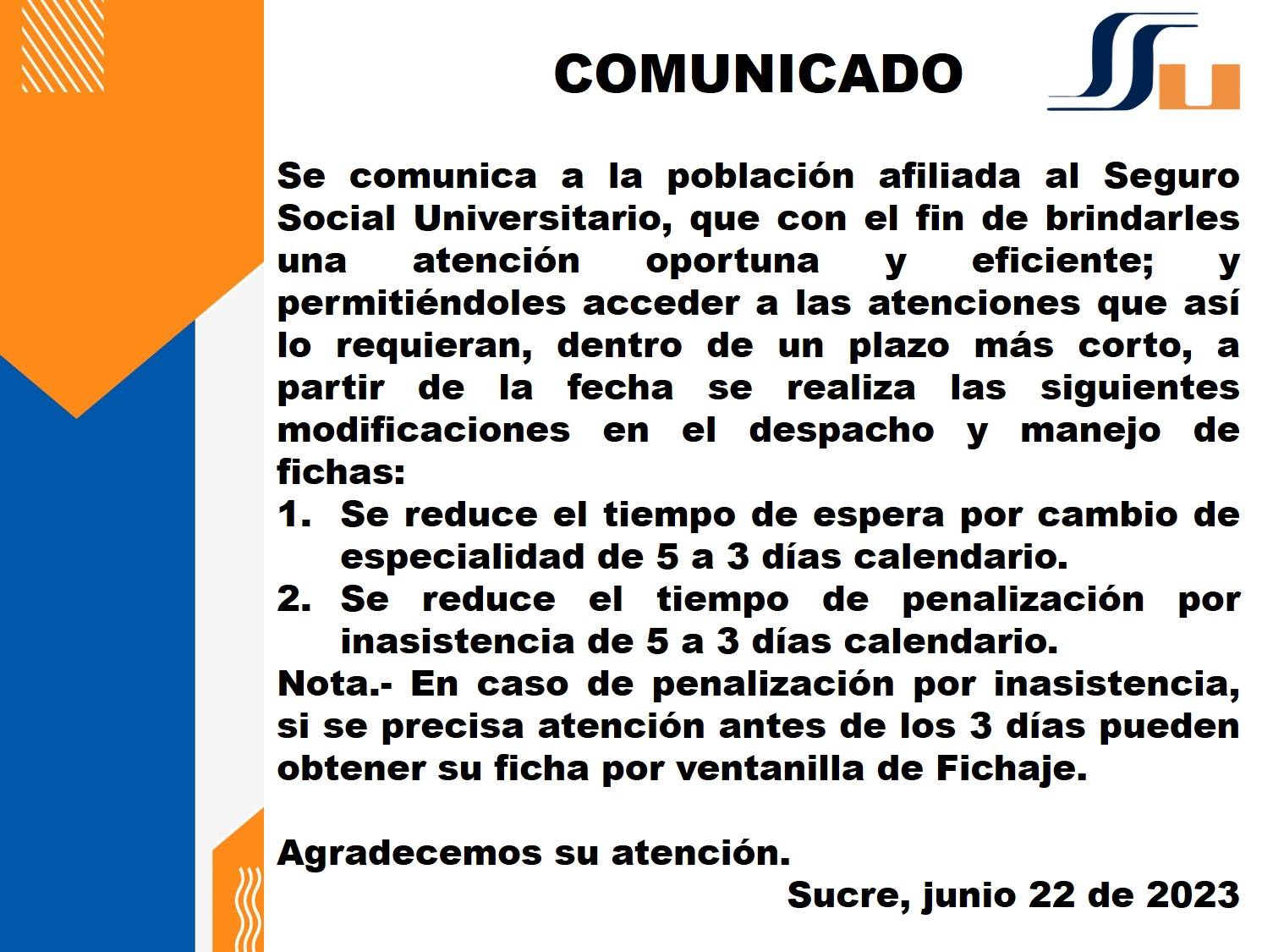 SE SUSPENDE ATENCIONES MÉDICAS Y ADMINISTRATIVAS JUEVES 21 DE SEPTIEMBRE